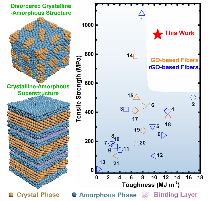Matter:北航郭林、岳永海与欧洲国际纳米技术研究所王中长团队通过构建晶体-非晶超结构成功实现了氧化石墨烯基高强纤维的制备