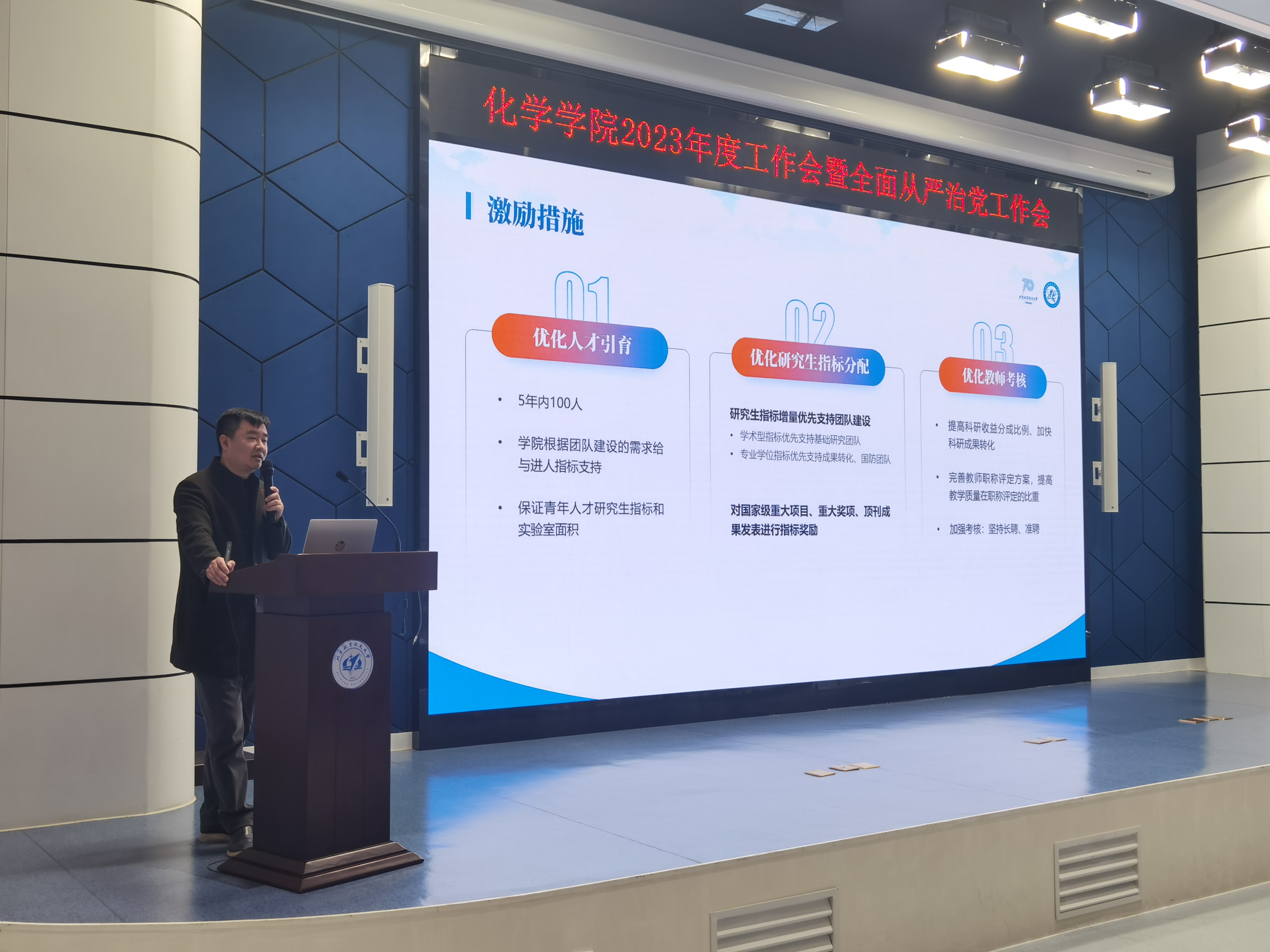 2月20日下午,77779193永利在沙河主楼多功能厅召开2023年度工作会暨全面从严治党工作会议,公司全体教师和员工支部书记参加会议,会议由党委副书记张绍丽主持。