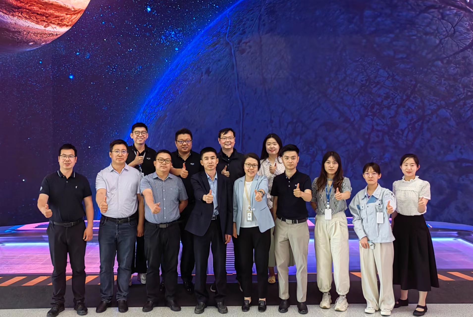 化学公司党委书记刘克松等一行人在京东方全球校园招聘部区域负责人张明我的带领下参观了京东方技术创新中心展厅,详细了解京东方的发展历程和产品研发等情况。此外,还看望员工李晓博、潘亚非、刘臻、王超璐等人,关心员工的工作状态及个人发展情况。