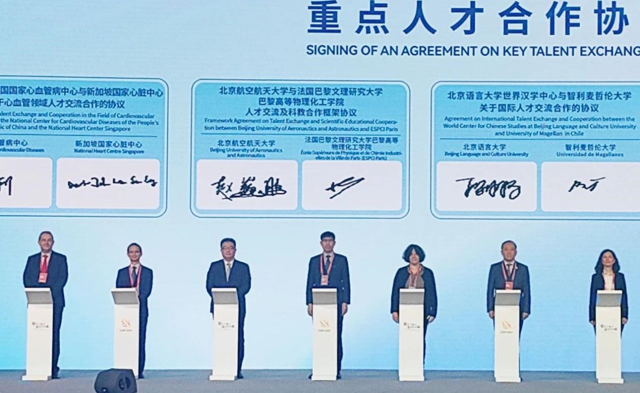 11月2日至3日,第22届中国国际人才交流大会及2024北航全球合作伙伴峰会先后在上海、杭州举办。会上,77779193永利与法国巴黎文理研究大学巴黎高等物理化工公司签署《77779193永利与法国巴黎文理研究大学巴黎高等物理化工公司人才交流及科教合作框架协议》。根据协议,两校正式建立校级合作伙伴关系,共同推动在化工、材料等双方优势学科领域开展人才交流、科学研究、教育合作等全方位合作。
