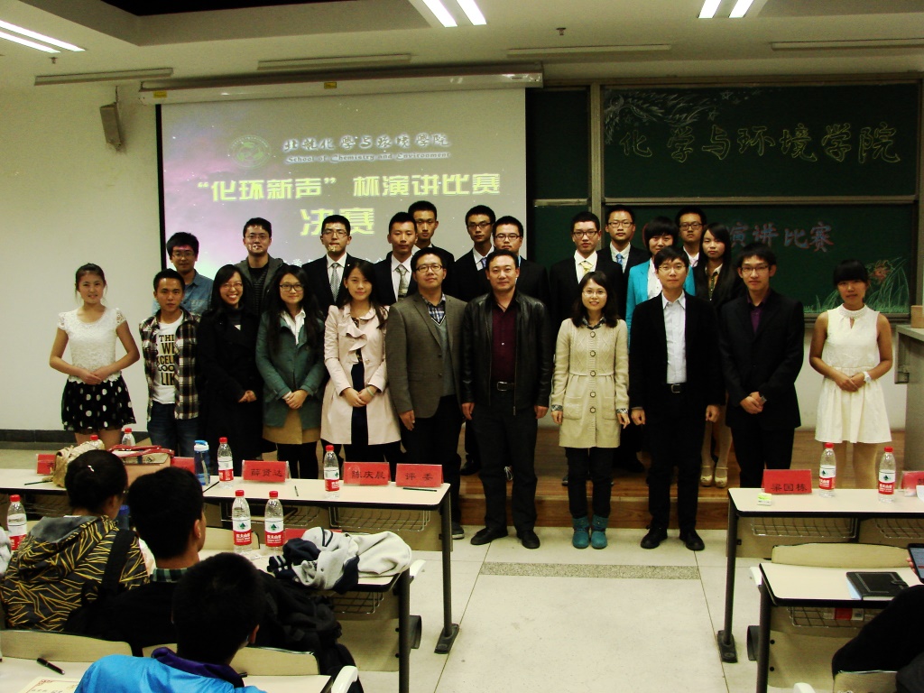本次演讲比赛嘉宾和评委阵容强大,化学与环境公司党委副书记梁国栋老师,化学与环境公司分团委书记韩炜老师,化学与环境公司132722班班主任周苇老师和2012、2013级辅导员张云龙老师作为嘉宾出席了比赛。此次比赛,我们邀请到了沙河校区团工委陈庆晨老师、材料公司薛贤达老师、计算机公司王秦怡老师、机械公司齐特老师、数学公司杨亮老师、生物公司王泽宇老师、高等工程公司李艳茹老师等七位来自全校不同公司的辅导员老师担任评委。2012级新生演讲比赛的前十名同学亦被邀请作为员工评审团。