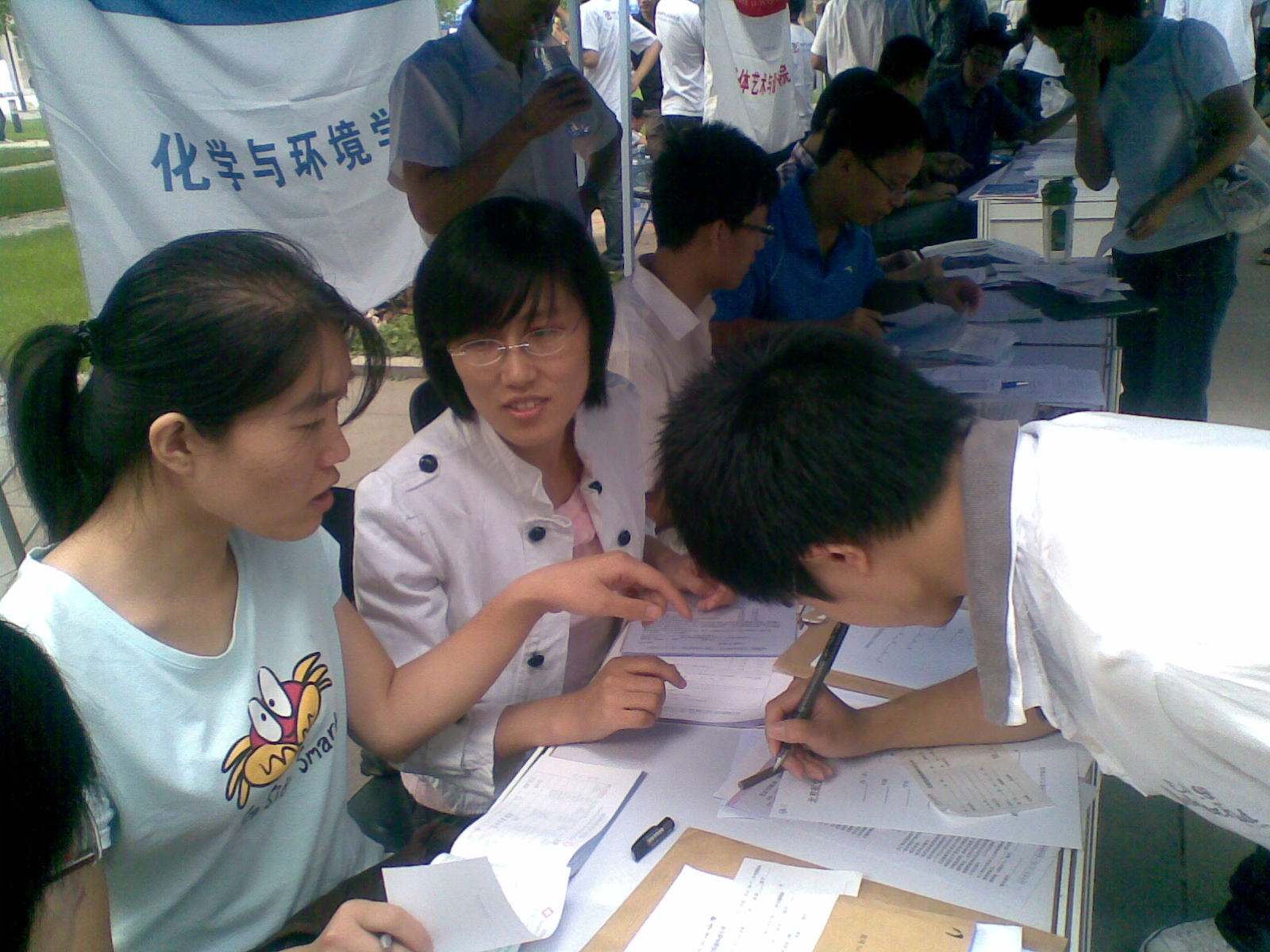 2010年9月9日早7:30,化学与环境公司研究生会工作人员及研究生志愿者在公司求是广场热情迎接了公司2010级研究生新生。整个报到过程简洁有序,充分为员工考虑,保证了报到快速迅捷的完成,使广大新生在入学的第一时间里就感受到了公司的关怀。
