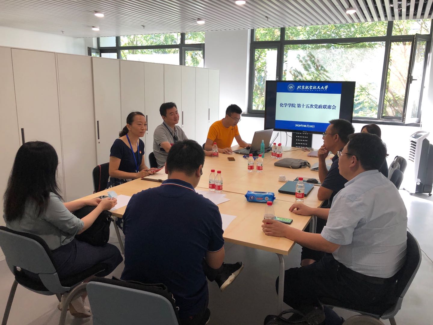 2020年8月10日上午9点,化学公司党政负责人在沙河校区实验四号楼303机关办公室组织召开了2020年第15次党政联席会。会议听取了相关负责人对各自分管工作的阶段汇报,并就公司近期疫情防控工作、实验室开放管控、沙河校区实验室装修施工进度、继教楼腾退工作、教学新学期准备、员工返校、及公司搬迁准备等近期公司重点工作进行部署,并提出相关要求和指示。