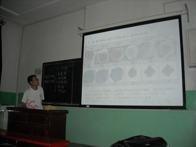 参加该次答辩的项目有牛天田的“纳米光催化及杀菌功能涂层的研究”,李志超的“新型蛋壳膜生物吸附剂的研制及其在回收贵、重金属方面的应用”,康建新的“Cu2O基光电转换材料的控制合成及应用探索",张琳琳的“镍纳米材料的合成与磁学性质的研究”,徐涛的“冰花镀锡膜的制备及其在纹理防伪系统模型制作”共五个项目。