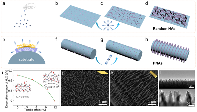 成核和结晶是物质科学中普遍存在的重要概念,发生在许多自然和工业过程中。根据传统的成核理论,溶液中的成核源于热波动引起的局部浓度的瞬时波动,致使成核与生长表现出随机取向。因此,在基底上生长的纳米片阵列总是表现出无序排列,这严重阻碍了催化过程中的液相传质。特别是,当涉及到工业规模的电催化产气反应时(如电解水),安培级的高电流密度对电极的传质能力提出更高的要求。