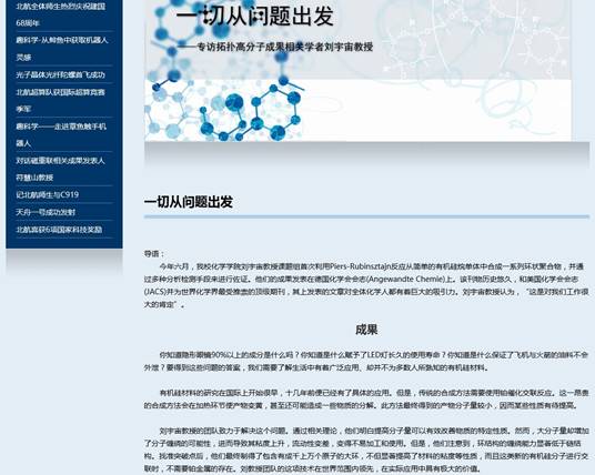 公司2016级博士生于建一在刘宇宙教授的悉心指导下,以唯一一作身份在世界化学界最受推崇的顶级期刊之一德国化学会会志(AngewandteChemie International Edition,影响因子为11.994)上发表相关论文,论文题目为:Cyclic Polysiloxanes with Linked Cyclotetrasiloxane Subunits, 即“环环相扣”的环状聚硅氧烷。近期,刘宇宙教授作为课题组负责人接受了公司采访,并在北航新闻网首页“科学研究”专栏进行了报道。