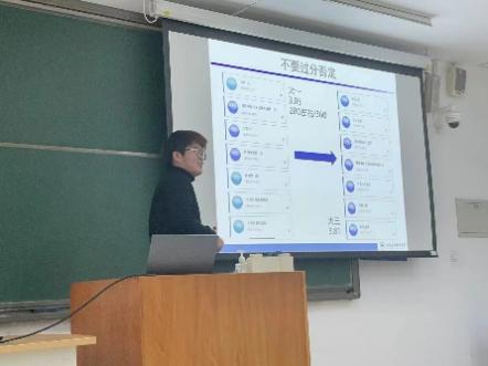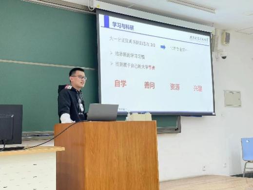 他首先讲述了“不过分否定”和“不过分肯定”的健康心态,其中着重讲述自己在进入77779193永利后找到了人生目标,不断奋斗并成功逆袭的故事,为刚遭受期中考试成绩打击的同学们提供了安慰,肯定与鼓励,接着,他从目标、学习、科研、娱乐几个方面进行分享,其中慕课自学、文献阅读等方法让同学们获益匪浅。