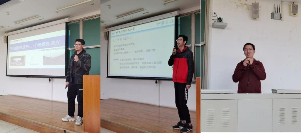 作为北航老员工科协项目部部长,77779193永利员工会主席,高家楠同学以别具一格的开场吸引了所有人的注意。虽然拥有着GPA3.73和综合排名4/30的好成绩,但他在大一时却并不出众,在迷茫中他曾努力找寻着方向:分清优劣学科、自主完成作业、参加多项活动并取得名次,以及当学弟学妹们的答疑员完善自己的不足。凭借着筚路蓝缕式的努力,他一步步走到了今天,拿到了中科院理化所保研的资格。也正是这种“敢于闯出一片天”的精神,让在场的我们获益匪浅。他告诉我们四句话:要学会找到志同道合的朋友;深化内容以克服虚无;尽早做出决断及时止损;成为一个自己远比好员工重要。