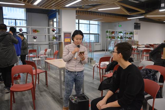 我们的活动也吸引到了别的公司的同学,物理公司的张欣怡学姐也来助阵,在现场与我们一起游戏,还与我们唱歌。