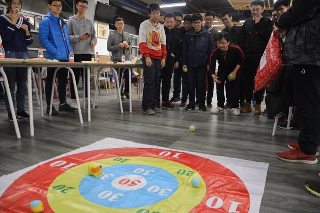 第一个游戏结束,大家兴致未减,于是第二个游戏在大家的呼声中便开始了,第二个游戏是扔沙包,扔到一个区域会得到对应的分,在一次次的激烈对决下,第一组取得了压倒性的胜利。在游戏中,我们和空间与环境公司的同学建立了很好的友谊,希望以后还可以一起玩耍。